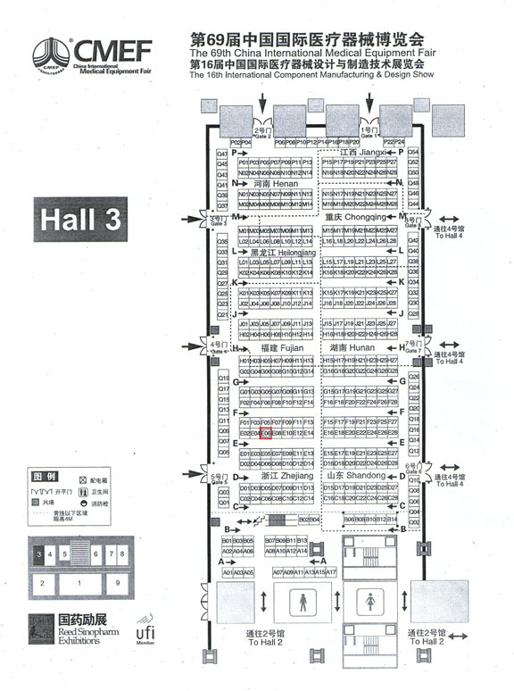 我公司將于2013年4月17日-20日參加在深圳舉行的第69屆中國醫(yī)療器械春季博覽會。展位位于3號館E06號 (H3-E06詳見附圖),公司熱誠歡迎新老客商與會業(yè)務(wù)接洽。